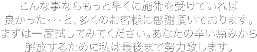 - 勇気を出して様々な場所で施術やケアをうけてみたが まったく改善していない