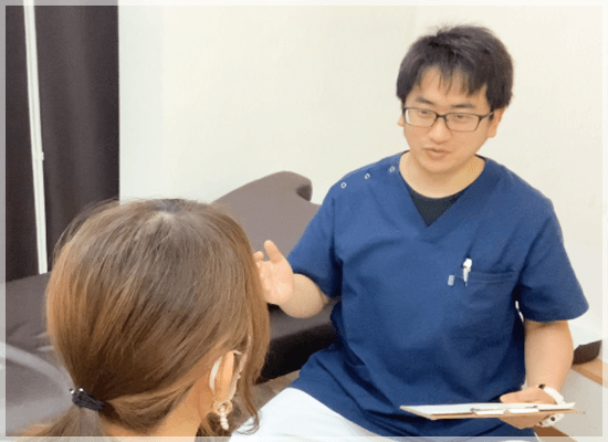 なぜ痛みが出たかをしっかり説明してくれて、それに対して施術をしれくれた。そのお陰で痛みが楽になるのはもちろんですが、その後も辛さが出にくくなりました。