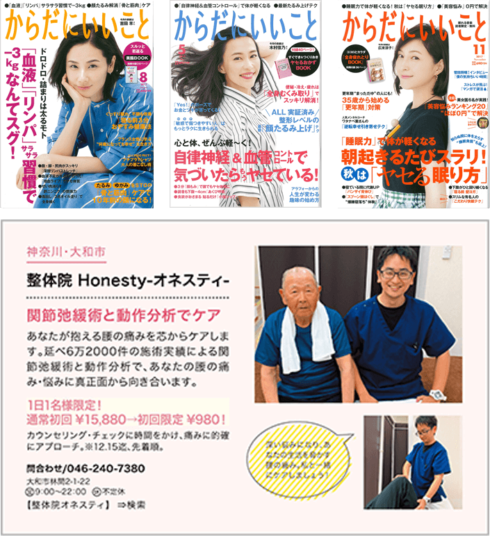 全国発行の雑誌に「全国発行の雑誌が認める優良・凄腕整体院!」として掲載されました!